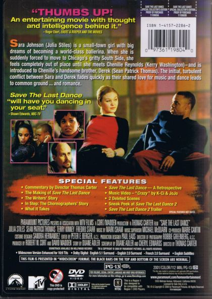 | Extras | Commentary by Director Thomas Carter The Making of Save The Last Dance The Writers' Story In Step: T |