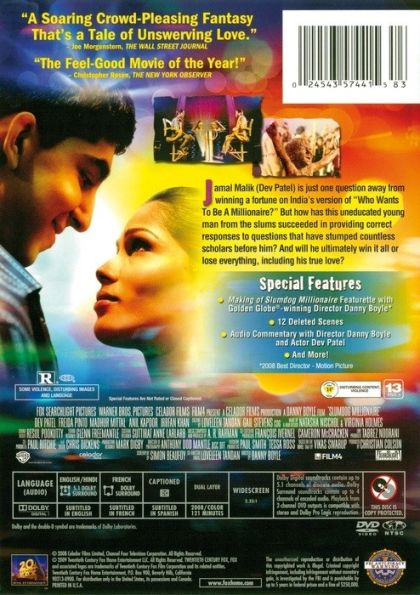 | Extras | Making of Slumgod Millionaire Featurette with Golden Globe winning Director Danny Boyle 12 Deleted S |