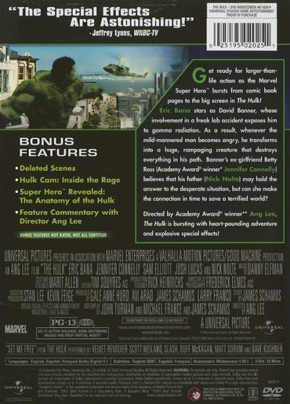 | Extras | Deleted Scenes Hulk Cam: Inside The Rage Super Hero Revealed: The Anatomy Of The Hulk Feature Commen |
