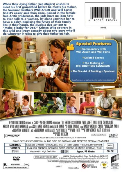 | Extras | - Commentary with Will Arnett and Will Forte- Deleted Scenes- The Making of THE BROTHERS SOLOMON- Th |
