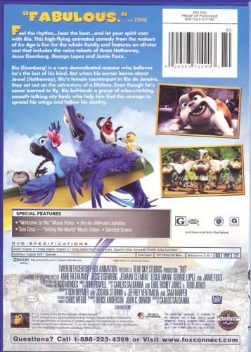 Captured by smugglers when he was just a hatchling, a macaw named Blu never learned to fly and lives a happily domesticated life in Minnesota with his human friend, Linda. Blu is thought to be the last of his kind, but when word comes that Jewel, a lone female, lives in Rio de Janeiro, Blu and Linda go to meet her. Animal smugglers kidnap Blu and Jewel, but the pair soon escape and begin a perilous adventure back to freedom -- and Linda.