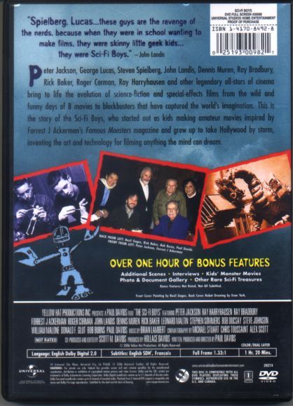 Legendary all-stars of cinema bring to life the evolution of science-fiction and special effects films from the wild and funny days of B-movies to blockbusters that have captured the world's imagination. This is the story of the Sci-Fi Boys, who started out as kids making amateur movies inspired by Forrest J Ackerman's FAMOUS MONSTERS magazine and grew up to take Hollywood by storm, inventing the art and technology for filming anything the mind can dream.