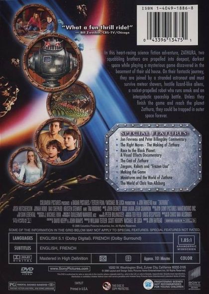 | Extras | Jon Favreau and Peter Billingsly Commentary The Right Moves: The Making Of Zathura Race To The Black |