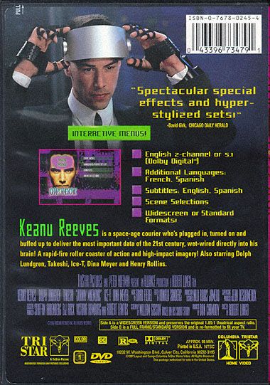 In a dystopian 2021, Johnny is a data trafficker who has an implant that allows him to securely store data too sensitive for regular computer networks. On one delivery run, he accepts a package that not only exceeds the implant's safety limits—and will kill him if the data is not removed in time—but also contains information far more important and valuable than he had ever imagined. On a race against time, he must avoid the assassins sent to kill him and remove the data before it, too, ends his life.