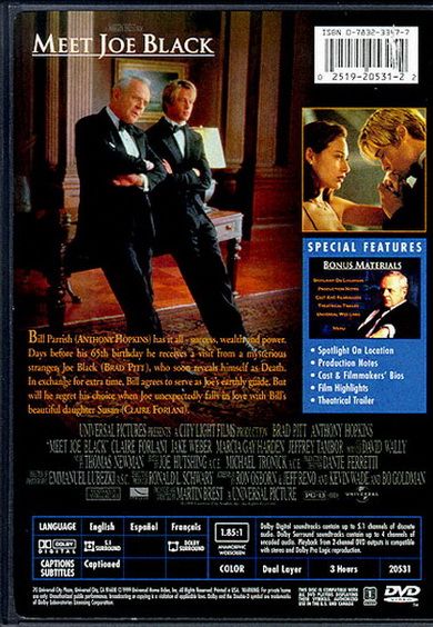 When the grim reaper comes to collect the soul of megamogul Bill Parrish, he arrives with a proposition: Host him for a "vacation" among the living in trade for a few more days of existence. Parrish agrees, and using the pseudonym Joe Black, Death begins taking part in Parrish's daily agenda and falls in love with the man's daughter. Yet when Black's holiday is over, so is Parrish's life.