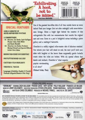 When Billy Peltzer is given a strange but adorable pet named Gizmo for Christmas, he inadvertently breaks the three important rules of caring for a Mogwai, and unleashes a horde of mischievous gremlins on a small town.