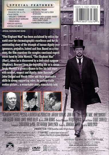 A Victorian surgeon rescues a heavily disfigured man being mistreated by his "owner" as a side-show freak. Behind his monstrous façade, there is revealed a person of great intelligence and sensitivity. Based on the true story of Joseph Merrick (called John Merrick in the film), a severely deformed man in 19th century London.