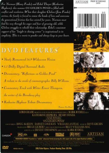 | Extras | Documentary: "Reflections on Golden Pond" a tribute to the work of cinematographer Billy Williams Co |