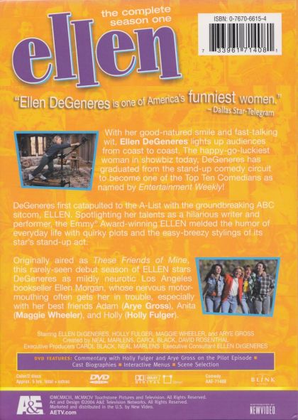 Ellen, which was titled "These Friends of Mine" during its first season, is comedy about the life of a young woman by the name of Ellen Morgan-a neurotic, 30-something, bookstore employee who tries to get by life in dealing with her many random foils and follies (and not to mention her annoying and overbearing parents, Lois and Harold). Thanks to her friends, however, among them including the bubbly redhead Paige, insecure photographer Adam, her unsure-of-himself cousin Spence, coffee shop guy Joe Farrell, and the critical and obnoxious Audrey, Ellen is able to find the security, and the sanity, to get through her less than normal every day life. The show can be described as a combination between popular sitcoms Seinfeld and Friends, blending a perfect mix of comedy and situational humor with the drama and excitement of every day issues and life in the "real world".