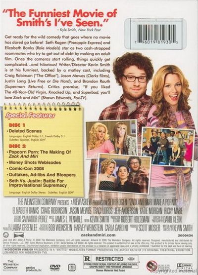 | Extras | Disc 1: - Deleted Scenes Disc 2: - Popcorn Porn: The Making Of Zack And Miri - Money Shots Webisodes |