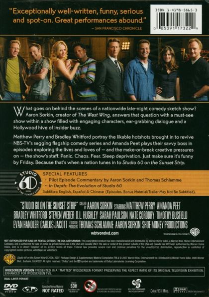 Aaron Sorkin, the mastermind behind "West Wing" and "Sports Night" brings NBC's next great drama, Studio 60 on the Sunset Strip. Featuring an all-star cast in front of and behind the camera, such as "Friends" alum Matthew Perry, "West Wing" alum Bradley Whitford, plus the talented Amanda Peet, D.L. Hughley, Richard Schiff and veteran Ed Asner. Sorkin, who will handle much of the writing duties, makes sure this vehicle promises to be the fall's most buzzed about new drama.