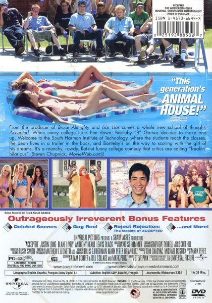 | Extras | Deleted Scenes Gag Reel Reject Rejection: The Making of Accepted ...and More! |
