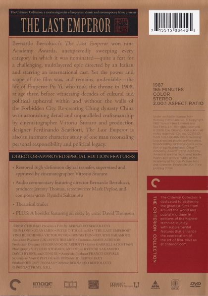 | Writer | Enzo Ungari, Mark Peploe, Bernardo Bertolucci, Puyi | |