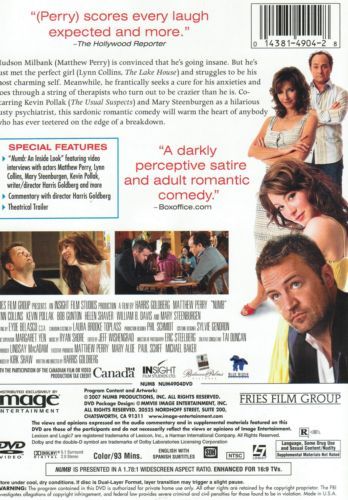 | Extras | Numb: An Inside Look Featuring Video Interviews Commentary With Director Harris Goldberg Theatrical |