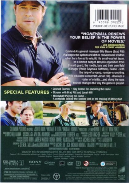 | Extras | Deleted Scenes Billy Beane: Re-Inventing The Game Blooper with Brad Pitt and Jonah Hill Moneyball: P |