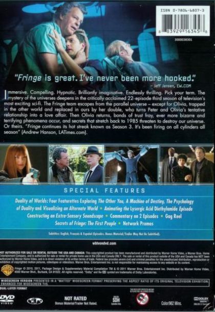 Teleportation. Mind control. Invisibility. Astral projection. Mutation. Reanimation. Phenomena that exist on the Fringe of science unleash their strange powers in this thrilling series, co-created by J.J. Abrams (Lost, Alias), combining the grit of the police procedural with the excitement of the unknown. The story revolves around three unlikely colleagues - a beautiful young FBI agent, a brilliant scientist who’s spent the last 17 years in a mental institution and the scientist’s sardonic son - who investigate a series of bizarre deaths and disasters known as "the pattern." Someone is using our world as an experimental lab. And all clues lead to Massive Dynamic, a shadowy global corporation that may be more powerful than any nation.