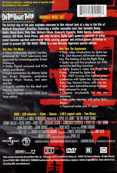 | Extras | Disc One: The Movie: Audio Commentary By Director Spike Lee, Ernest Dickerson, Production Designer W |