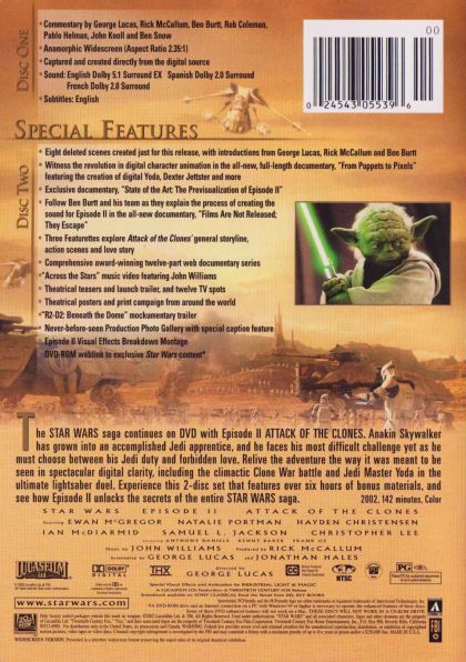 | Extras | Commentary by George Lucas, Rick McCallum, Ben Burtt, Rob Coleman, Pablo Helman, John Knoll, and Ben |