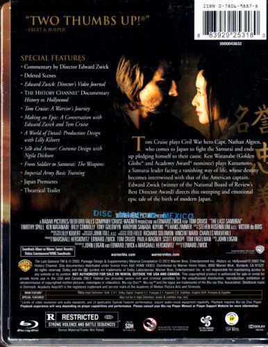 | Extras | • Commentary By Edward Zwick • History Channel Documentary – History vs. Hollywood: The Last Samurai |