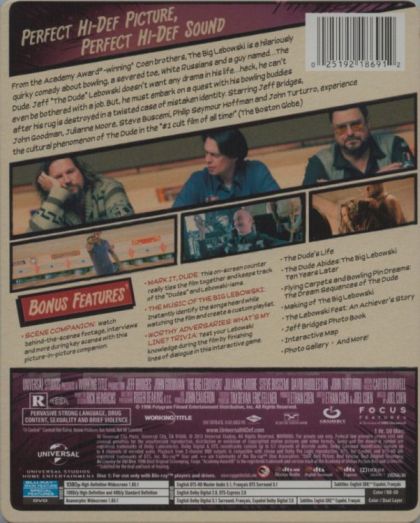| Extras | Scene companion Mark it, dude; The music of The Big Lebowski Worthy Adversaries: What's My Line? T |