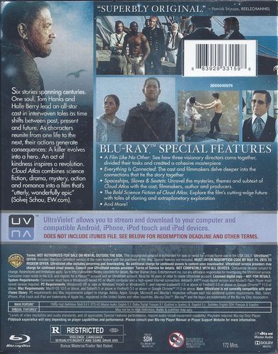 A set of six nested stories spanning time between the 19th century and a distant post-apocalyptic future. Cloud Atlas explores how the actions and consequences of individual lives impact one another throughout the past, the present and the future. Action, mystery and romance weave through the story as one soul is shaped from a killer into a hero and a single act of kindness ripples across centuries to inspire a revolution in the distant future. Based on the award winning novel by David Mitchell. Directed by Tom Tykwer and the Wachowskis.