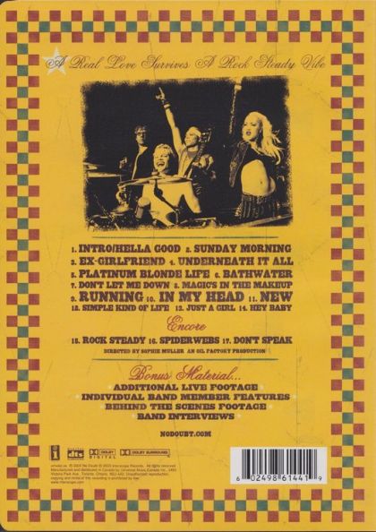 Rock Steady Live is a video album by American ska punk band No Doubt, released on DVD on November 25, 2003 under the Interscope records label. The DVD was directed by Sophie Muller. It is a recording of two of No Doubt's concerts during their Rock Steady Tour in 2002 to promote their fifth studio album, Rock Steady, which was released in December 2001. The material was recorded in November 2002 in Long Beach Arena, California. The concert features performances of seventeen songs from the band's previous three albums: Tragic Kingdom, Return of Saturn and Rock Steady; extras include performances of four extra songs, interviews with each band member and backstage footage of the tour.