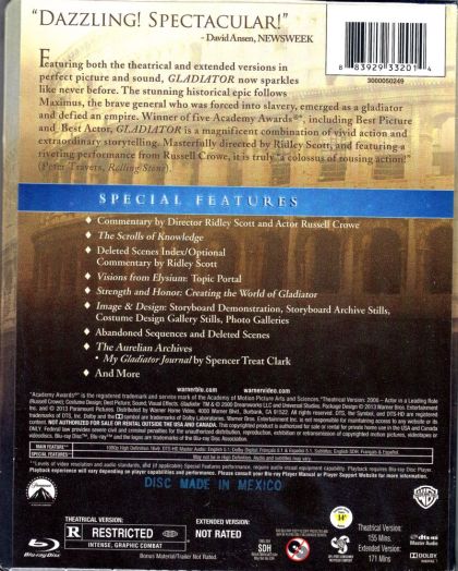 | Extras | SUPPLEMENTAL MATERIAL: - Commentary by Director Ridley Scott And Actor Russell Crowe - The Scrolls o |