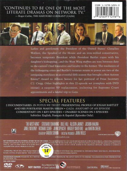 | Extras | 2 Documentaries: - In Potus We Trust: Presidential Profile of Josiah Bartlet and his portrayer Marti |