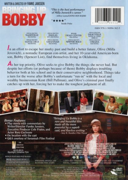 Bringing Up Bobby is the story of a European con-artist and her son Bobby, who find themselves in Oklahoma in an effort to escape her past and build a better future. Olive and Bobby blithely charm their way from one adventure to another until Olive's criminal past catches up with her. Consequently, she must make a choice: continue with a life of crime or leave the person she loves most in an effort to give Bobby a proper chance in life.