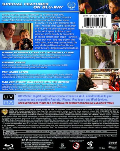 | Extras | Making Extremely Loud & Incredibly Close * Finding Oskar * Ten Years Later * Max Von Sydow: Dialogue |