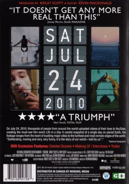 A documentary shot by filmmakers all over the world that serves as a time capsule to show future generations what it was like to be alive on the 24th of July, 2010.