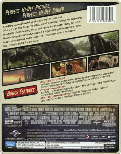 | Extras | SUPPLEMENTAL MATERIAL: - Digital Copy of King Kong (Subject to expiration. Go to NBCUCodes.com for d |