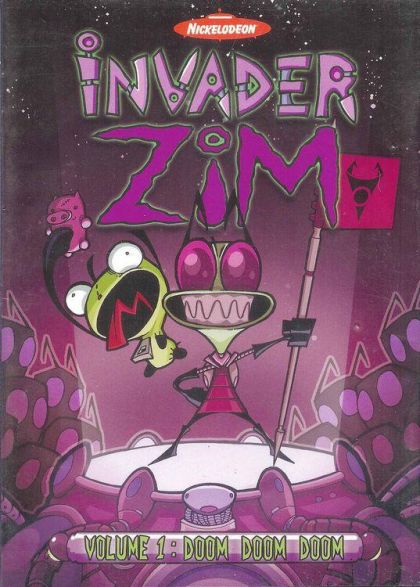 Comic book artist Jhonen Vasquez's outré sci-fi spoof, which ran on Nicktoons at Night from March 2001 to December 2002, remains the object of a vociferous cult following. Pressure from the fans compelled Nickelodeon to resume production of Invader Zim twice before the show was cancelled permanently. The title character is a zealous, none-too-bright agent from the Irken Empire posing a human boy. Zim imagines he's gathering vital information for the imminent conquest of Earth; the Irken leaders actually sent him here to get rid of him. With the rather spotty assistance of Gir, his robot sidekick disguised as a dog, Zim alternately sneers at humanity and gets himself into trouble. The only person who recognizes Zim as an alien is his UFO-obsessed classmate, Dib.