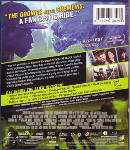 | Extras | -Behind the Block: Documentary -Creature Feature: Special Effects -Meet the Gang: Cast -Unfimed Acti |