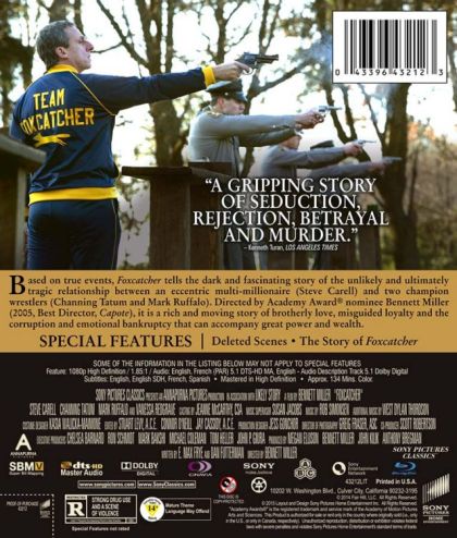 | Extras | Foxcatcher contains a disappointingly brief assortment of extras, made of a featurette, two deleted |