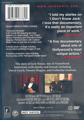 | Extras | •Jack's Photos (3 min) •Trailers: 7 Year Zig Zag (3 min); I Don't Know Jack (3 min); Had to Be Made |