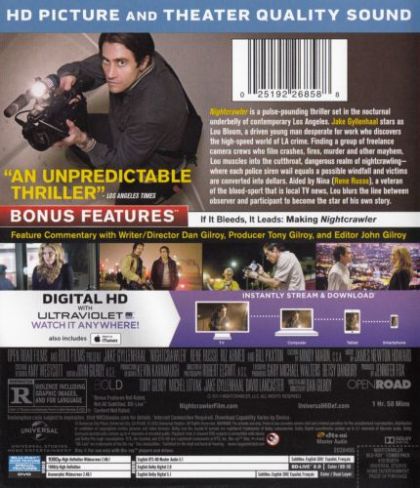 | Extras | •If It Bleeds, It Leads: Making Nightcrawler •Feature Commentary with Writer/Director Dan Gilroy, P |