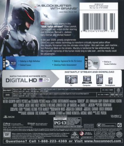 | Extras | •Deleted Scenes •Omnicorp Product Announcement •RoboCop: Engineered for the 21st Century ?The Illusi |