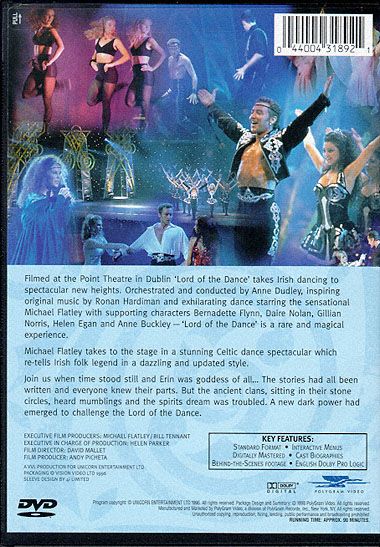 Filmed at the Point Theatre in Dublin 'Lord of the Dance' takes Irish dancing to spectacular new heights. Orchestrated and conducted by Anne Dudley, inspiring original music by Ronan Hardiman and exhilarating dance starring the sensational Michael Flatley with supporting characters Bernadette Flynn, Daire Nolan, Gillian Norris, Helen Egan and Anne Buckley - Lord of the Dance is a rare and magical experience. Michael Flatley takes to the stage in a stunning Celtic dance spectacular which re-tells Irish folk legend in a dazzling and updated style. Join us when time stood still and Erin was goddess of all... The stories had all been written and everyone knew their parts. But the ancient clans, sitting in their stone circles, heard mumblings and the spirits dream was troubled. A new dark power had emerged to challenge the Lord of the Dance.