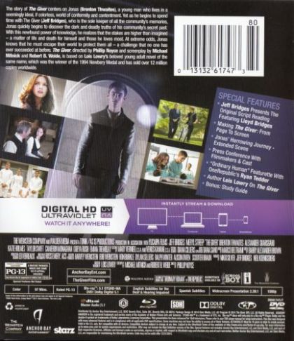 | Extras | Jeff Bridges Presents The Original Script Reading Featuring Lloyd Bridges Making The Giver: From Pag |