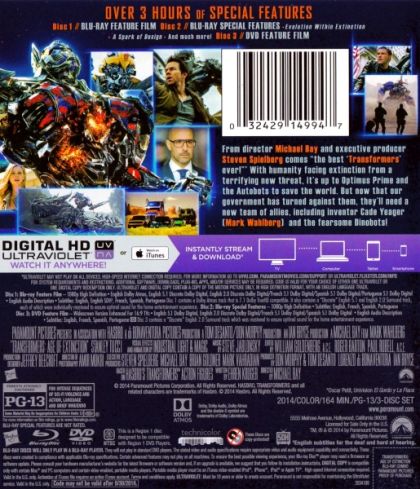 | Extras | Bay On Action Evolution Within Extinction Just Another Giant Effin' Movie A Spark Of Design T.J. Mil |