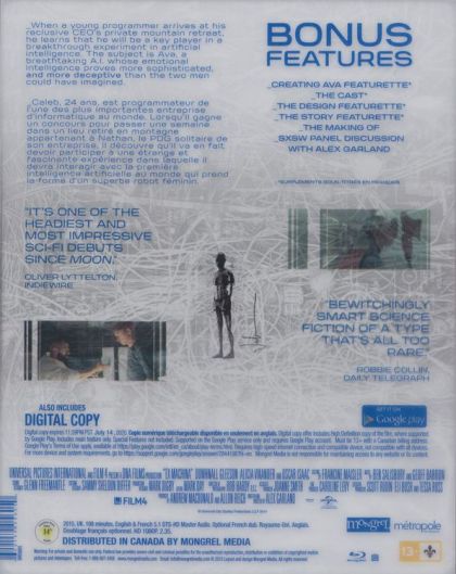 Caleb, a 26 year old coder at the world's largest internet company, wins a competition to spend a week at a private mountain retreat belonging to Nathan, the reclusive CEO of the company. But when Caleb arrives at the remote location he finds that he will have to participate in a strange and fascinating experiment in which he must interact with the world's first true artificial intelligence, housed in the body of a beautiful robot girl.