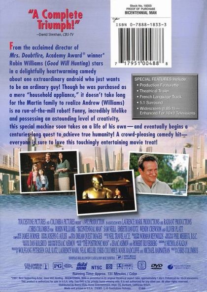 Richard Martin buys a gift, a new NDR-114 robot. The product is named Andrew by the youngest of the family's children. "Bicentennial Man" follows the life and times of Andrew, a robot purchased as a household appliance programmed to perform menial tasks. As Andrew begins to experience emotions and creative thought, the Martin family soon discovers they don't have an ordinary robot.