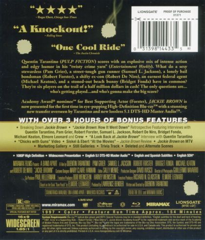 | Extras | • Critics Corner: Then and Now - NEW! • “JACKIE BROWN: How It Went Down” Documentary • “A Look Back |