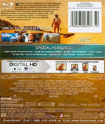During a manned mission to Mars, Astronaut Mark Watney is presumed dead after a fierce storm and left behind by his crew. But Watney has survived and finds himself stranded and alone on the hostile planet. With only meager supplies, he must draw upon his ingenuity, wit and spirit to subsist and find a way to signal to Earth that he is alive.