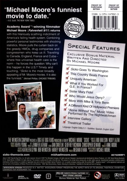 Sicko is a Michael Moore documentary about the corrupt health care system in The United States who's main goal is to make profit even if it means losing peoples lives. "The more people you deny health insurance the more money we make" is the business model for health care providers in America.