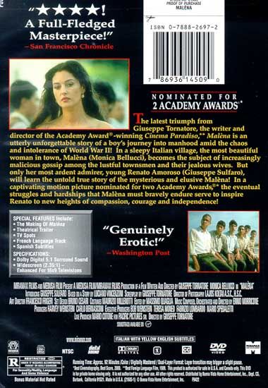 On the day in 1940 that Italy enters the war, two things happen to the 12-year-old Renato: he gets his first bike, and he gets his first look at Malèna. She is a beautiful, silent outsider who's moved to this Sicilian town to be with her husband, Nico. He promptly goes off to war, leaving her to the lustful eyes of the men and the sharp tongues of the women. During the next few years, as Renato grows toward manhood, he watches Malèna suffer and prove her mettle. He sees her loneliness, then grief when Nico is reported dead, the effects of slander on her relationship with her father, her poverty and search for work, and final humiliations. Will Renato learn courage from Malèna and stand up for her?