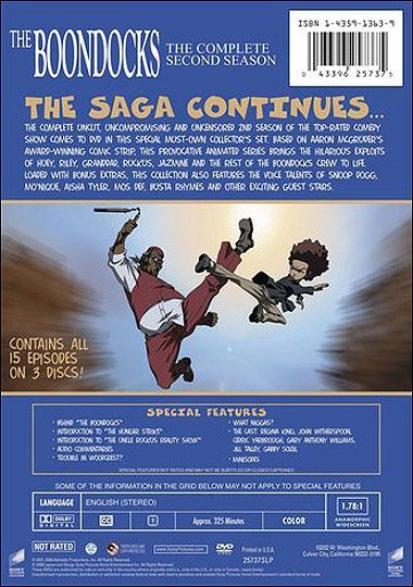 | Extras | Behind The Boondocks Introduction to "The Hunger Strike Introduction to "The Uncle Ruckus Reality Sh |