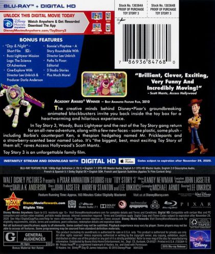 | Writer | John Lasseter, Andrew Stanton, Lee Unkrich, Michael Arndt, Mark Andrews, David Reynolds, Justin Wright | |