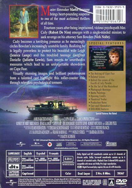 | Extras | THX Certified The Making Of Cape Fear Deleted Scenes Behind-The-Scenes of the Fouth of July Parade O |